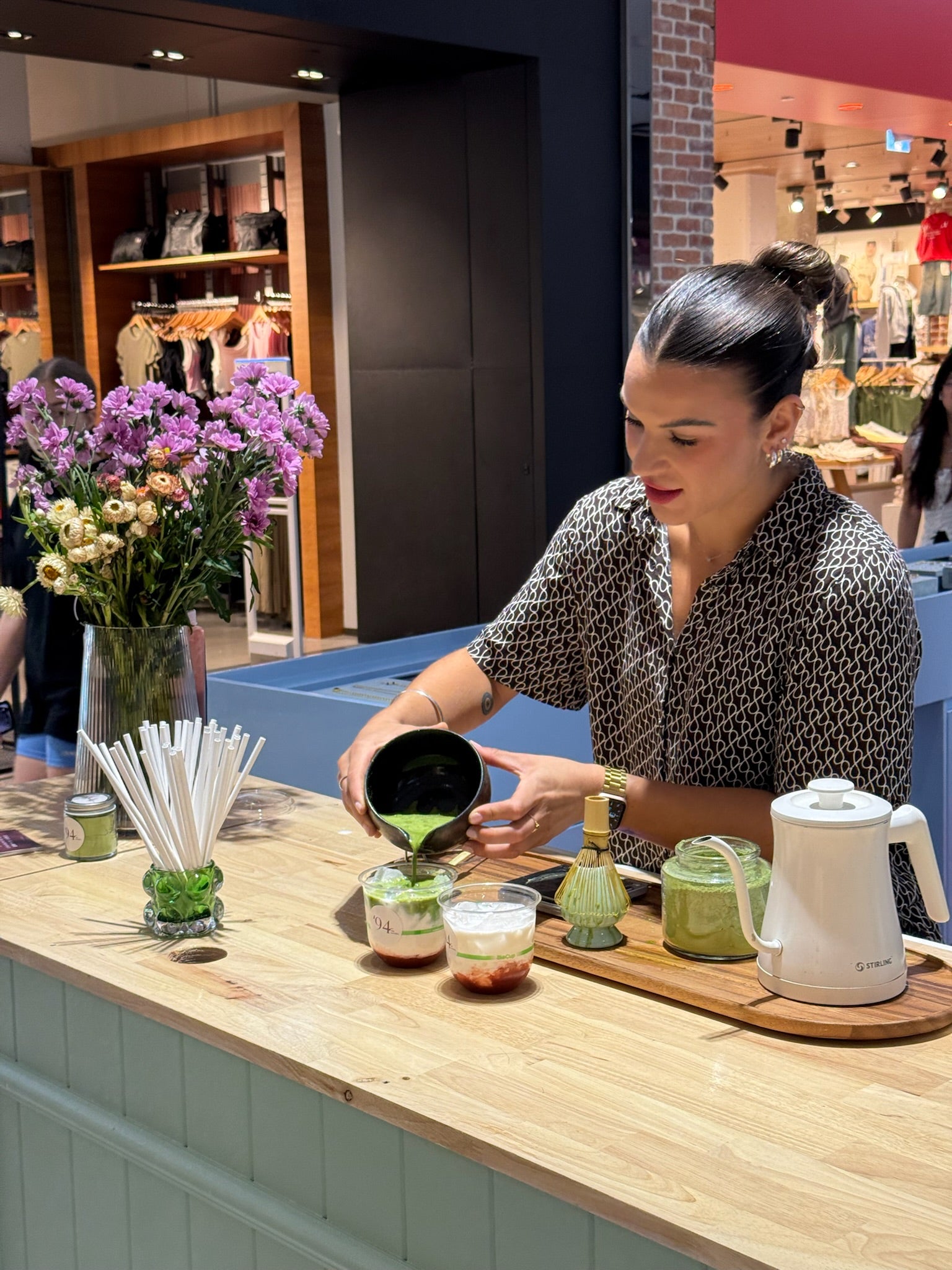 NinetyFour Matcha Cart was part of Arms of Eve’s Pacific Fair opening, serving matcha as guests celebrated the launch of the new store.